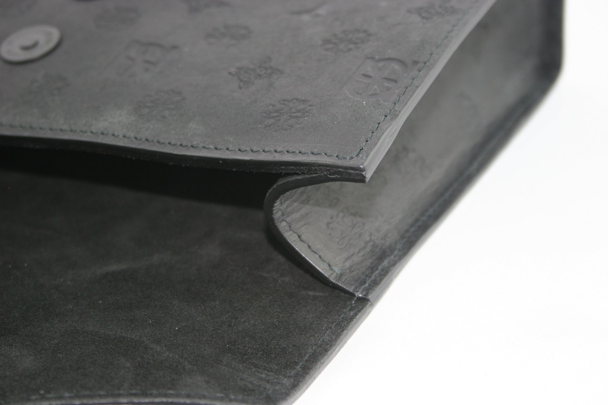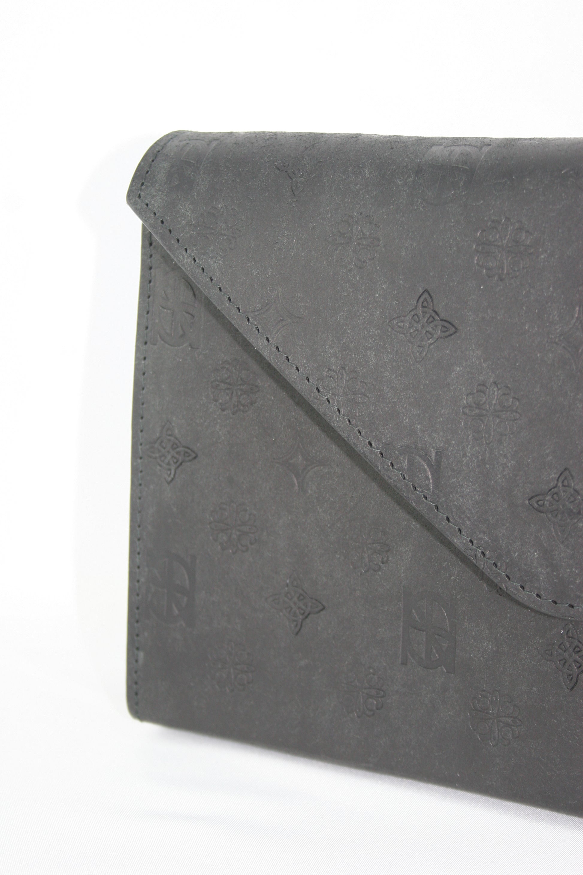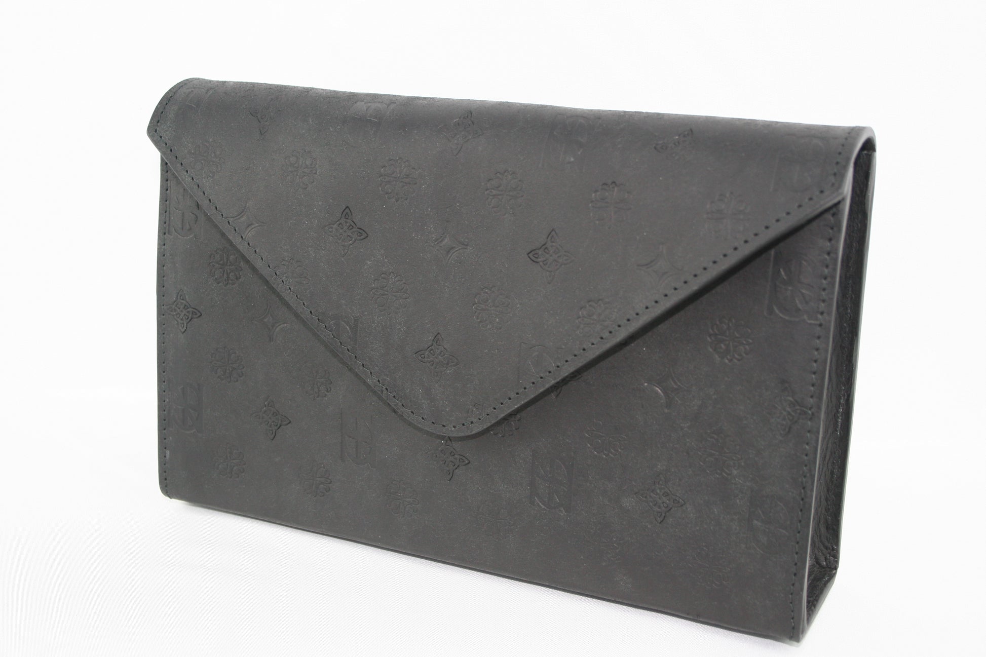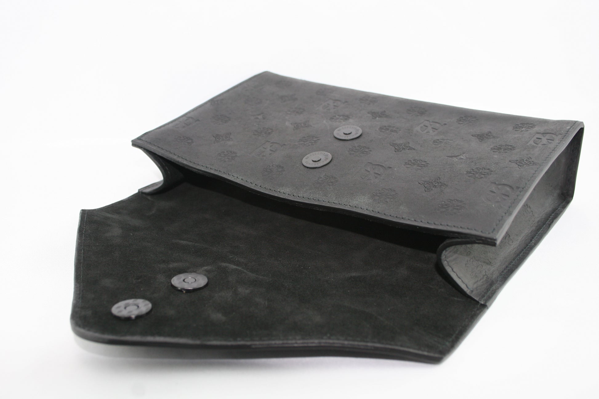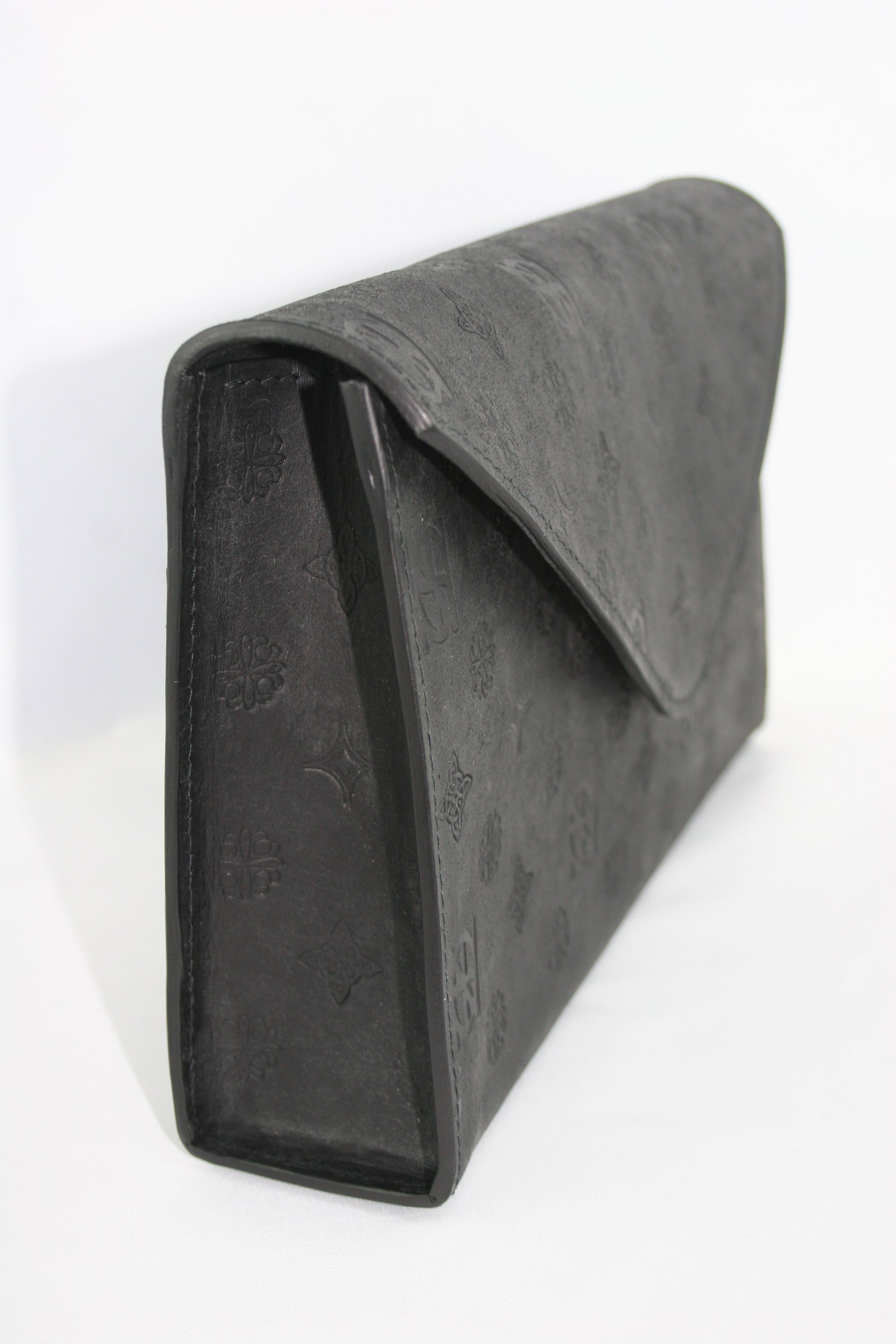 Sleek. Sculptural. Refined. The embossed envelope clutch bag is the embodiment of modern elegance, designed for evenings that call for quiet confidence and considered detail. Crafted from high quality hand embossed leather, its architectural envelope silhouette is clean and commanding, minimalism as its most luxurious. The pouch opens to reveal a rich black suede lining, offering a moody contrast to the bags crisp exterior. Uncomplicated by pockets of compartments, the design celebrates simplicity and form, allowing the materials to speak for themselves. The pouch opening is secured seamlessly with a dual magnetic catch, preserving the bags fluid lines while ensuring your essentials remain safely tucked away.